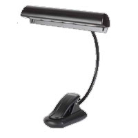 The Encore Light is a miniature version of our popular Orchestra Light. Featuring a similarly sleek body design, the Encore's light bar contains six bright white, energy-efficient LEDs, along with an integrated back fin to shield the brilliant light from the audience. The Encore's head has a sliding power switch which offers two brightness levels. With a signature Mighty Bright clip and a flexible gooseneck, the Encore epitomizes music light perfection. For added convenience, the Encore light comes with an AC adapter and a black Mighty Bright travel bag. Start practicing - with our Encore Light you will be playing long into the night!